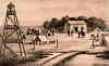 Caxias em seu acampamento em Tuiuti, vendo-se ao fundo seu QG e espartano alojamento, reconstituído com base em foto da época. (fonte: EME-CHEB 1972, aquarela de Martins) . |