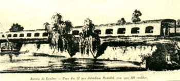 A bateria Londres de Humaitá com 180 canhões, a qual consta haver sido delineada com auxílio do major Vilagran Cabrita ,quando instrutor de Artilharia de Missão Militar no Paraguai. Foi dinamitada depois de conquistada pelo Batalhão de Pontoneiros do 2º Corpo de Exército. (Fonte: CÂMARA, Rinaldo. O Marechal Câmara) |
