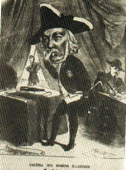 Caxias na caricatura na revista Semana Ilustrada, na fase decisiva da Guerra do Paraguai. (Fonte: EME - História do Exército Brasileiro) |
